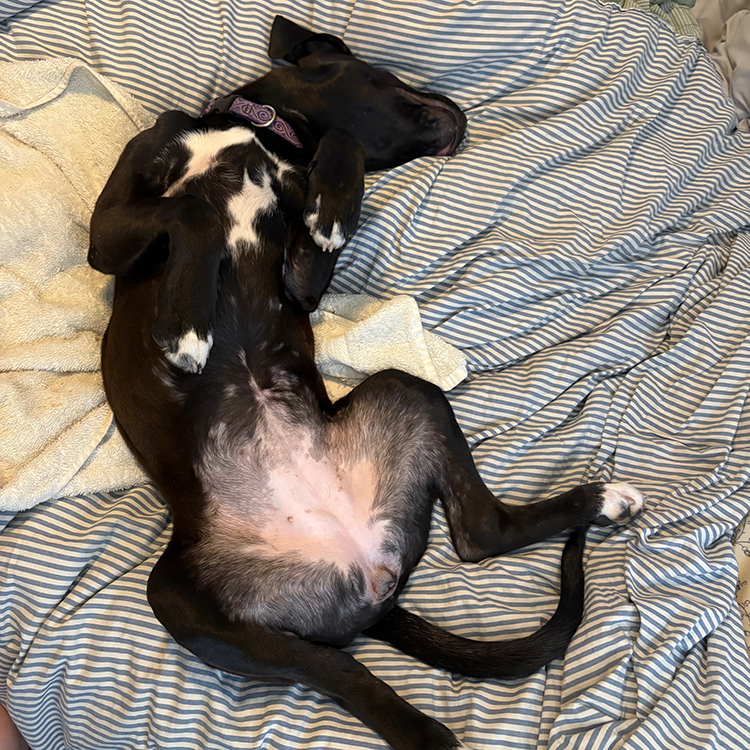 I’m resilient, happy, and love people. Even though I’ve been passed around a bit, I still trust humans and enjoy being near them. I’m smart, eager to please, and quick to learn new things. When I’m tired, I turn into a total snugglebug who loves to curl up with my people – or even fall asleep on top of them.