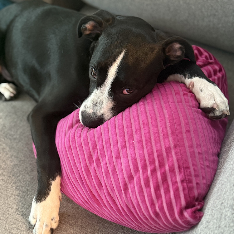 I love toys, walks, and most of all, snuggles. In fact, I think lap naps might be one of the best things ever invented. I’m doing really well with my kennel and potty training, and I’m already learning some fun tricks – I’m a smart girl who loves to make my people proud.