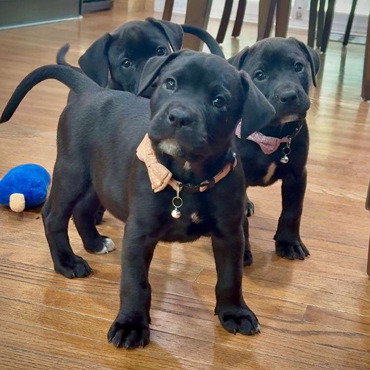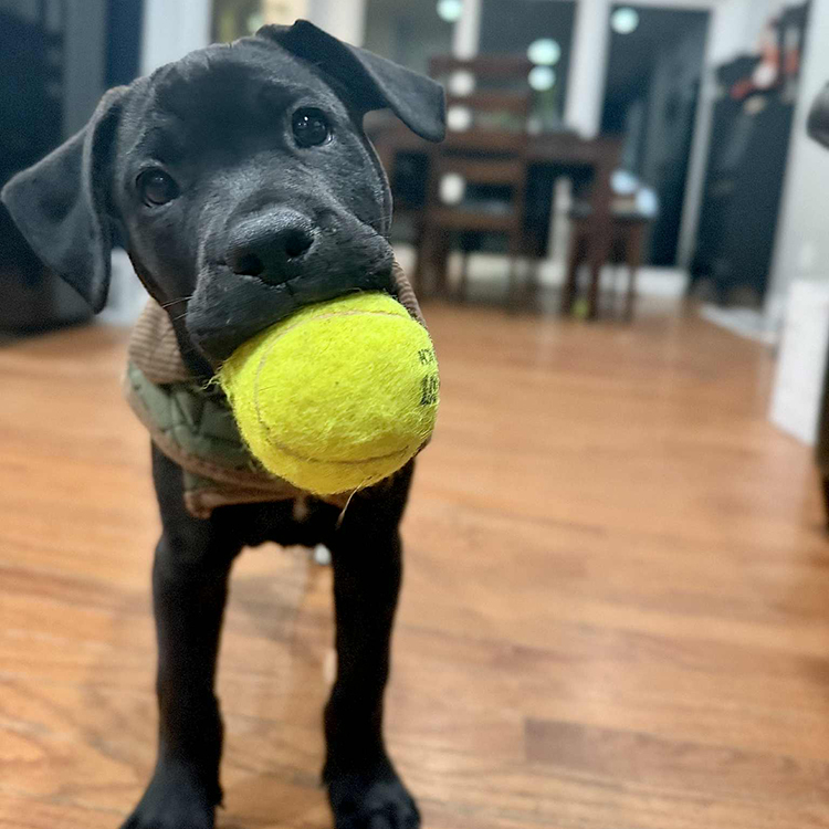 I have two human foster siblings. The boy is 17 and the girl is 14. I’m not sure who loves who more. I haven’t had the privilege of meeting any cats yet. I live with two Save-A-Bull alumni dogs and I just know they can help make me an even better dog. Blanche is the older lady of the house, she is eight years old, she is Boxer/Pitbull mix. Stanley is the younger man of the house at five years old. Lucky me – Stanley still plays like a puppy! Stanley is quite a bit taller than Blanche, he is probably a Weimaraner/Pitbull mix. I am definitely more on the submissive side. I love to play, but haven’t really tried to play with the big dogs of the house yet. Two of my littermate brothers lived in the same foster home with me for a couple weeks and we loved to play! Stuffed animals, bones, or ropes, but our favorite was the cat toy!