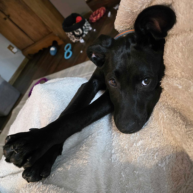 I’m a shy girl at first, but once I feel comfortable, my goofy, playful side really comes out. I LOVE playing with dogs and people! And if someone tells me it’s time to settle down, I’m a good listener – I’ll just grab a toy or take a nap. I’m still building my confidence, especially in new situations, but with a little patience and encouragement, I’m learning that everything is going to be okay.