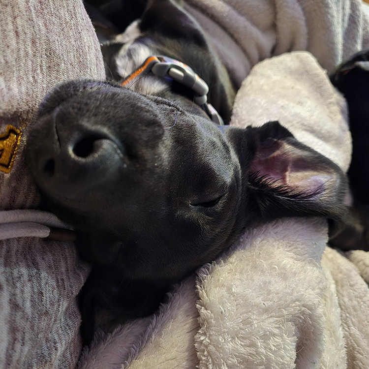 When it’s time to sleep, I want to be as close as possible – snuggled up with another dog or my humans, usually with my head tucked right on your chest or neck. I’m basically a tiny, warm, slightly wiggly scarf.