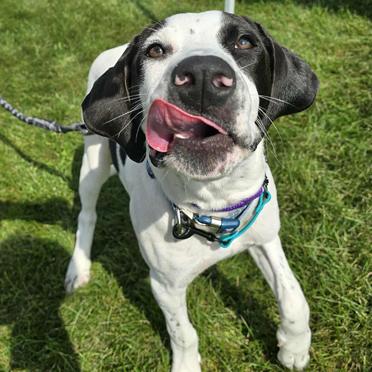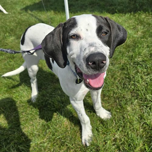 My perfect home would be one with lots of snuggle time and also some activity. I love going for walks and exploring outside, and I also just want to be near my people. I am a chill pup, but I am still young and have energy for playing and activities. I will do well in a home by myself or with another dog to keep my company. No Kitties for me please. I would love to meet you!