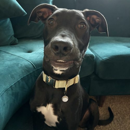 I live with two other dogs (both Save-A-Bull alumni), and I think they’re awesome – even if they sometimes roll their eyes at me for being the playful little brother who always wants to wrestle. My play style is rough-and-tumble, so I’d do best with a dog who can match my energy. Smaller or older dogs might find me a bit much, but I promise I’m full of love and fun.